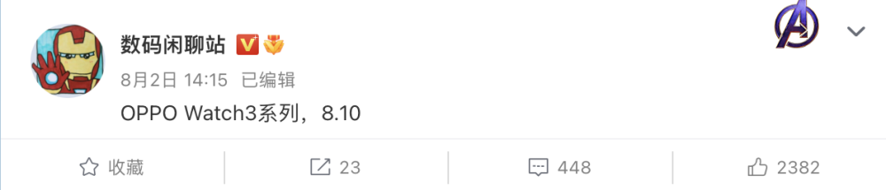 另外,@数码闲聊站 也发文称表示:OPPO Watch 3系列,8.10~
